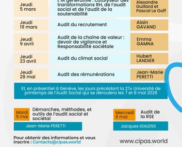 Le CIPAS lance son cycle de master class du premier semestre 2026 : des sessions concrètes, orientées outils et retours d’expérience, pour renforcer vos compétences, sécuriser vos pratiques et gagner en impact dans vos missions d’audit social, sociétal et RSE.